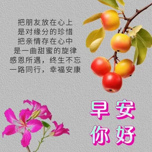 祝福是风,思念是帆,幸福是水,健康是船,祝福的风,思念的帆,幸福的水载着健康的船,飘向幸福的你。祝你健康。早上好,家人!