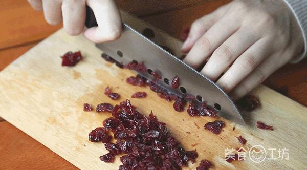 2. 将葡萄干和蔓越莓放入温水中清洗干净,切碎备用。