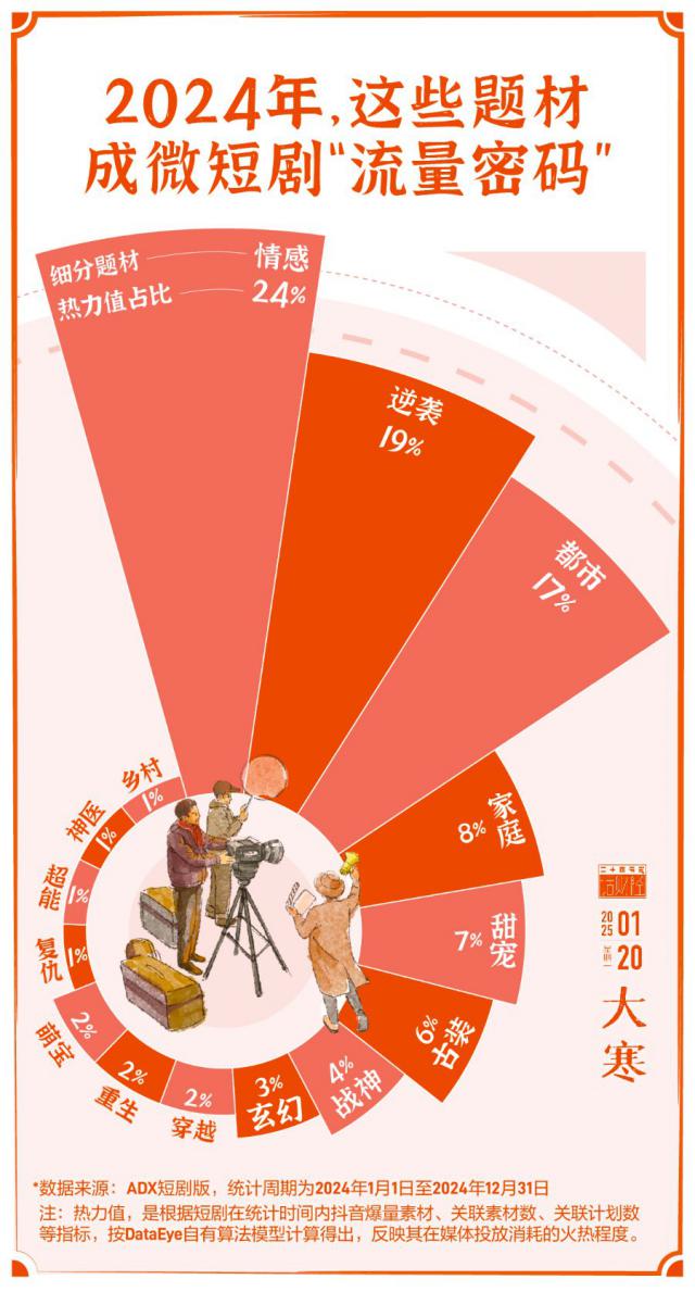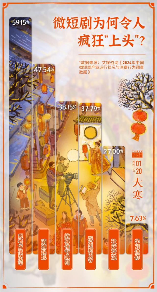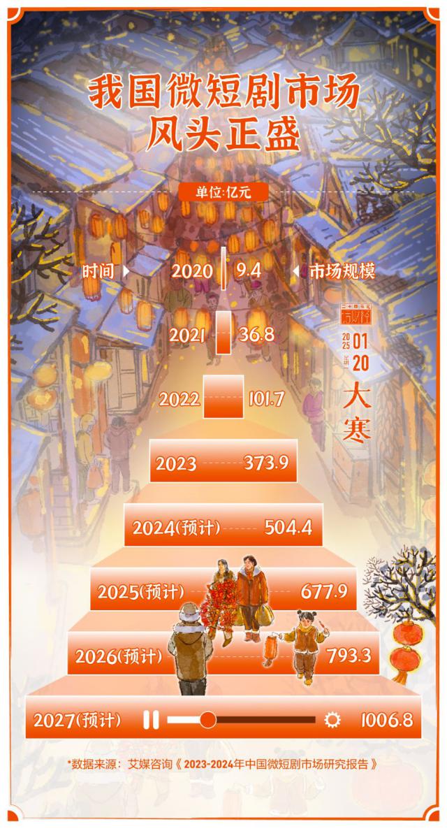 今天(2025 年 1 月 20 日子),大寒节气来了,此时正值岁末,年味越来越浓,2025 春节档电影纷纷定档,大银幕上的许多新片令人期待。而且另一方面,小屏幕上的微短剧也在积极参与春节期间的“票房对决”。日前,国家广播电视总局发布了“微短剧陪你过年” 2025 年微短剧春节档推荐片单,包括电视大屏端和网络平台端两个系列。微剧市场持续火爆。