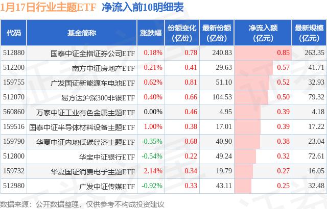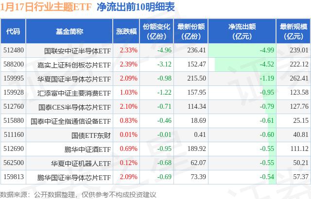 一月十七日行业主题ETF净流出14.84亿元