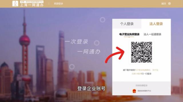 步骤二:用电子营业执照或法人一证通登录企业账户。