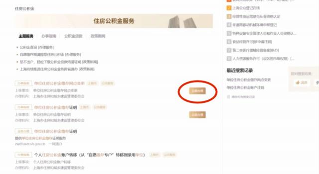 步骤一:在上海市“一网通办”“总门户搜索”单位公积金缴存网点变更”,找到相应事项后点击“立即办理”,进入办理页面。