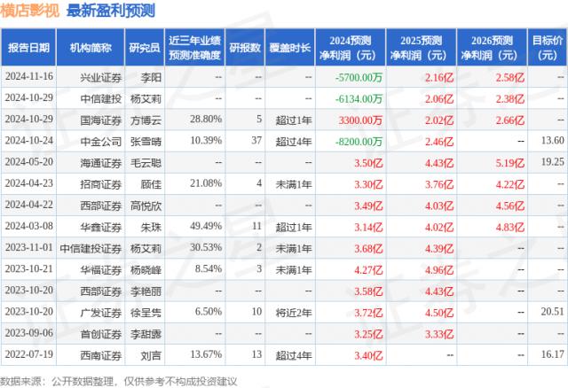 近日,华鑫证券有限公司朱珠对横店影视进行了研究,并发布了《公司事件评价报告》调查报告:2024 年度业绩承压落地 看 2025 年度内容新供应,本报告对横店影视进行了买入评级,目前股价为 13.56 元。