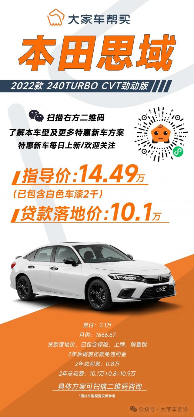 在思域上架之前 240turbo CVT 特价卡车方案,参考价格 14.49 万,落地 10.1 万!上架不久就被秒完了,甚至还有许多粉丝私下和我们聊过,为什么不能下单?