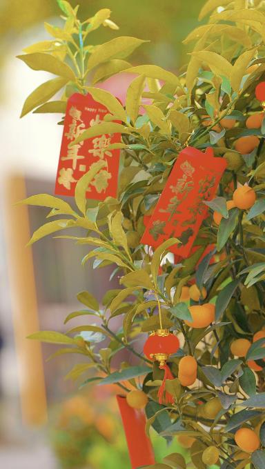 橘子树上,硕果累累,色彩鲜艳,宛如金珠,挂在绿色的树枝上,与红妆相得益彰,更显生机勃勃,熠熠生辉。这样的风景不仅代表着丰富和甜蜜,也代表着新的一年。生活将像这样充满希望和喜悦。