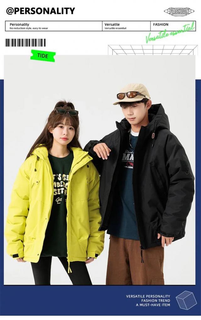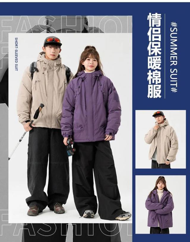 无论是下雪还是刮风,抗风防水材料都能轻松应对。� �。棉袄款式时尚舒适,情侣们一起穿着出门或到户外游玩,那甜美而温馨的画面简直太美了。