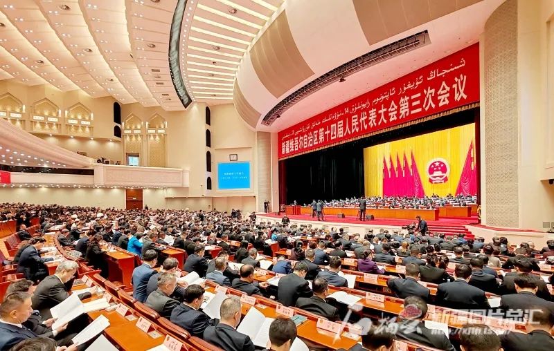 新疆维吾尔自治区第十四届人民代表大会第三次会议于1月19日在新疆人民会堂开幕。石榴云/新疆日报记者 崔志坚摄