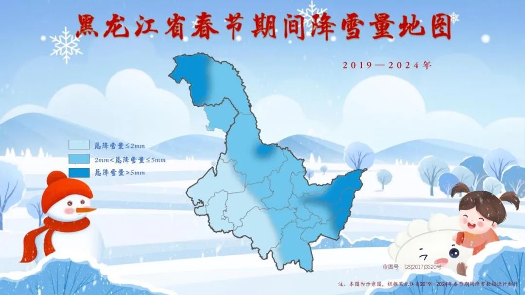 春节期间黑龙江省降雪量温图(2019-2024年)