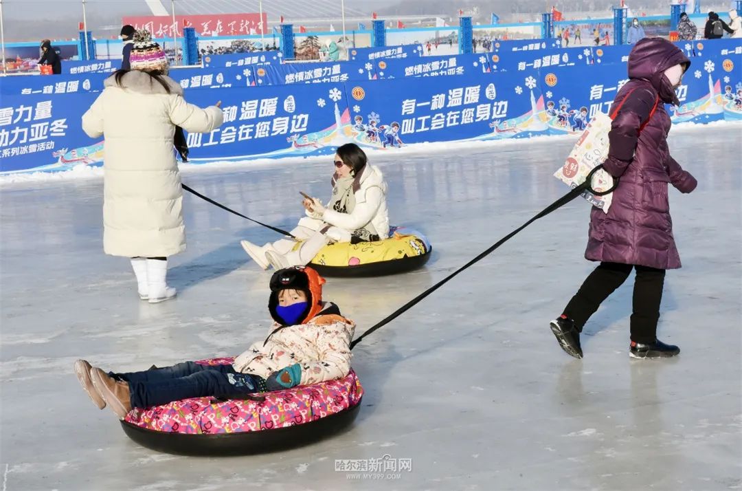 冰冻的松花江从来没有像今年冬天这么热闹过。从江南到江北,从阳明滩大桥到松浦大桥,松花江上到处都是有趣的冰雪运动,到处都是快乐的群体。员工冰雪公园位于哈尔滨工会港口,是热闹的地方之一。冰上有趣的项目,如冰壶、陀螺、冰上自行车、雪圈、冰爬犁、小飞侠、冰上龙舟等。,精彩纷呈,成为广大市民和员工冬季休闲娱乐的好地方。