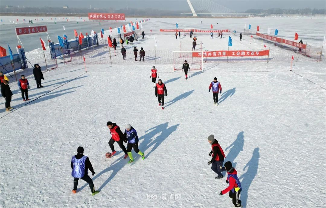 今年冬天,哈尔滨市总工会在哈尔滨工会码头建设了2万平方米的员工冰雪公园。乐区内项目丰富多彩,不仅有冰壶、冰上自行车等7个个人项目,还有冰上龙舟、冰帆、雪地足球等3个集体项目,全部免费向公众和员工开放。