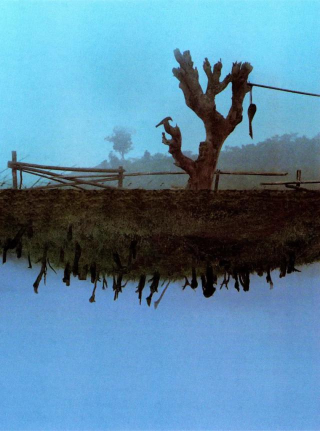 这儿我来过几次,每次来,都没有明显的变化。正屋空无一人,只有神龛前面有一张粘腻的桌子,地上散落着一堆劈开的竹条,应该是老人编篮子用的。每一个房间的门都像一个掉牙的老人的嘴,零零碎碎地打开。从我站的角度来看,正好可以看到老人的卧室,里面有一张床和一个空衣柜,柜门掉了一扇,柜子已经发霉变黑了。床很大,里面堆满了衣服,只剩下足够的老人一个人睡觉的空间,床单和被套已经看不到原来的颜色。床边有一张桌子,由两把椅子和一块木板制成。上面有很多乱七八糟的东西。桌子下面有一堆鞋子,基本上是一层厚厚的泥土或水泥。