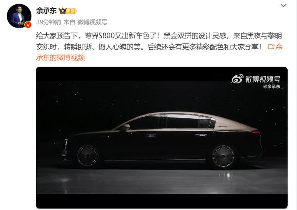 余承东预告尊界S800黑金双拼新配色 随后还有新的配色