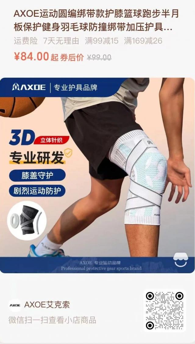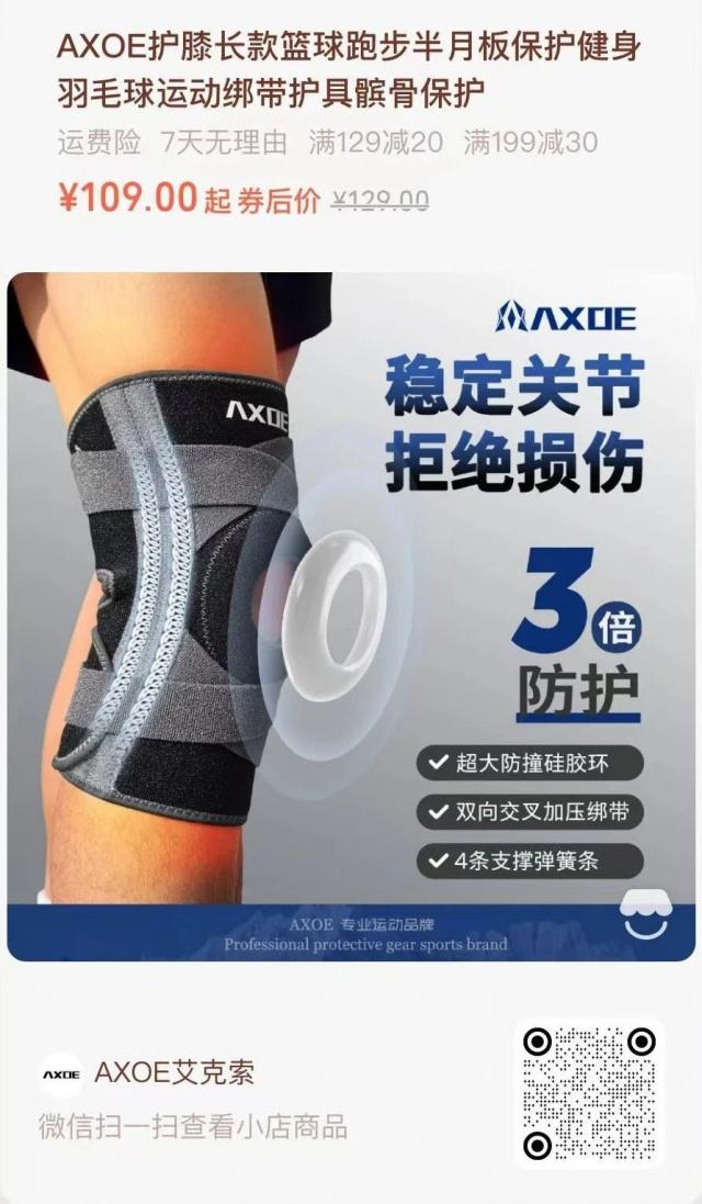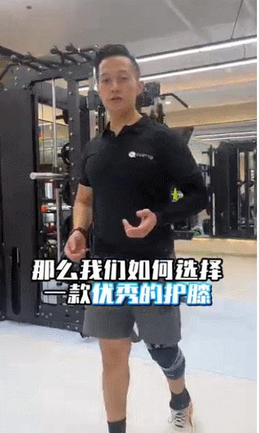 在训练过程中,他自己戴着这个护膝是一个国产新品牌。—— AXOE。
