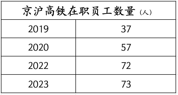 近几年的财务报告显示,京沪高铁在职人员最多也只有73人。
