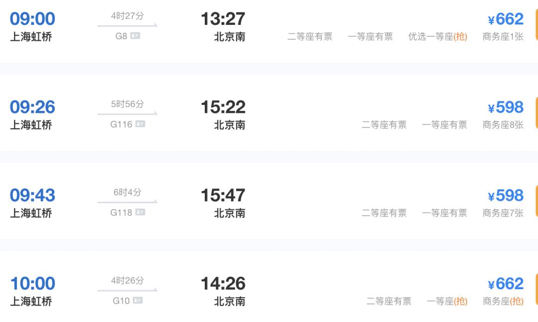 看看夜间增加的高铁,是多么准确地满足了两地商务人士的需求。晚上9点从上海站出发,第二天早上7点到达北京南站。如果你能睡觉,你就能到达目的地,无缝连接,起床工作。