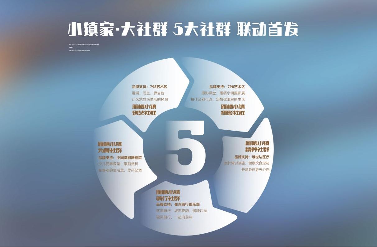 值得注意的是,雁栖小镇紧邻科技创新高地怀柔科学城,吸引了众多科智翘楚的聚集,形成了独具魅力的高智圈。雁栖小镇为了与当代科智雁的优雅生活品味相匹配,精心打造了约19万个㎡艺术商圈资源聚合。社区剧院、社区游泳池、精品酒店、精品商业等公共设施齐全,为大雁的国际社交活动提供了肥沃的生长土壤。此次发布的“头雁优享服务联盟”与五大社区的联动首发,将城镇的生活质量提升到了一个新的高度,构建了一种超越现实的理想生活方式。