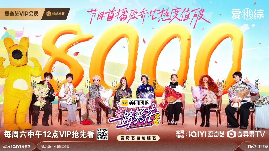 比如最近的热门综艺节目《一路花开》,第一期上线不到一周,全网热搜榜就达到了2000多个,爱奇艺的人气超过了8000个,在很多第三方数据榜上获得了第一名。