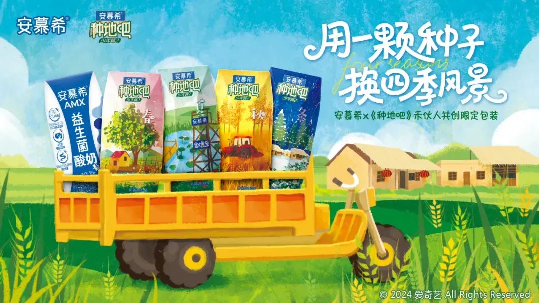 比如安慕希作为《种地吧2》的独家冠名商,通过IP授权、代言、带货等多种衍生方式,将IP的集中知名度落地到商业领域,全面提升品牌音量、认知度和销量。