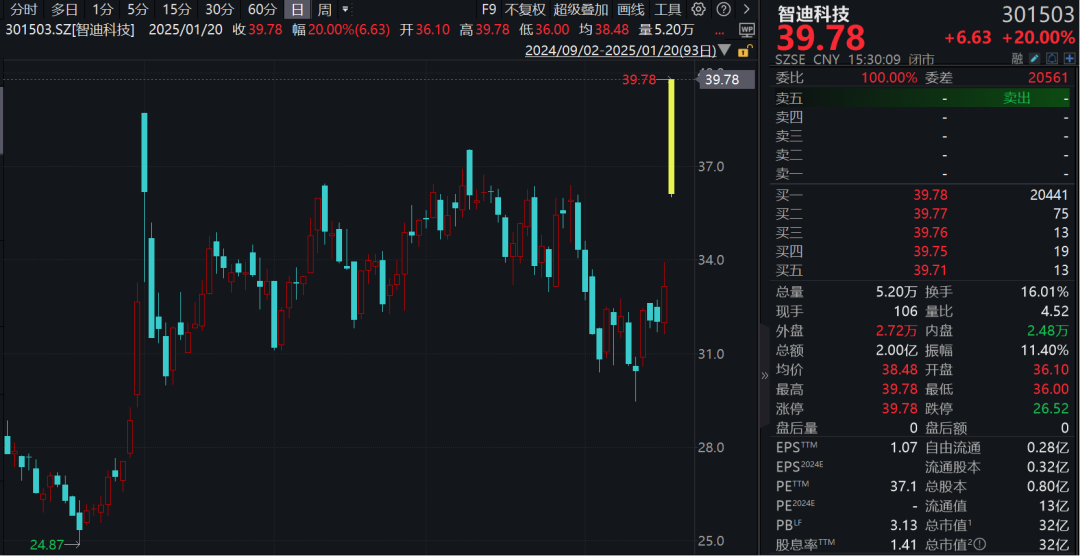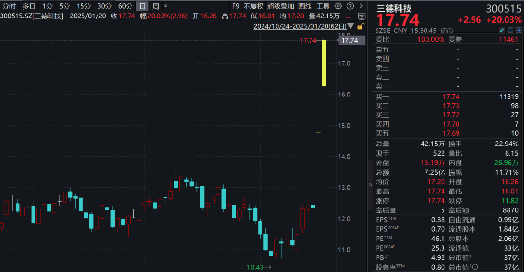 在市场热点方面,机器人概念今日掀起涨停潮,三德科技2日涨停20%,股价创下一年半新高。智迪科技和长盛轴承也20厘米封板,吉凯股份、远东股份、大为股份等近20只股票也强势涨停或涨幅超过10%。