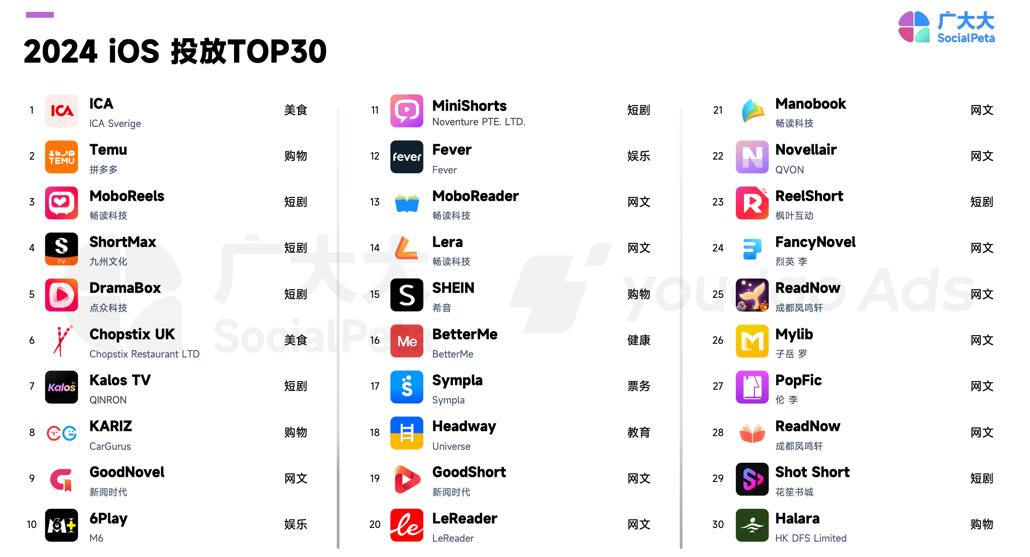 根据众多大数据研究院发布的《2024年移动应用营销白皮书》,GoodNovel在2024年ios发布的top30名单中排名第九。此外,还有12款网络应用进入榜单,其中没有阅读集团、字节跳动等大型制造商。