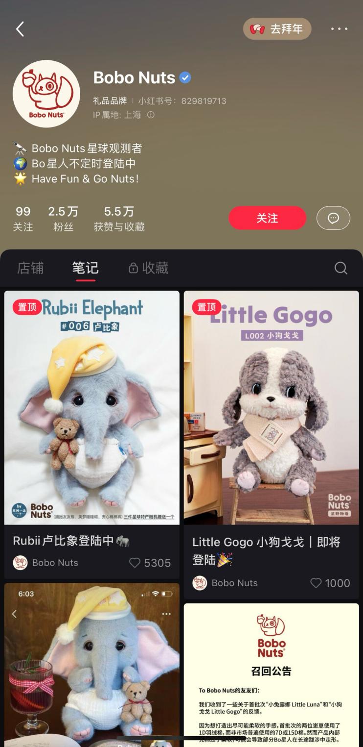 也就是说,个性化的需求已经成为一个好生意。Bobo这次上榜 Nuts,是一个专门做“大孩子”毛绒玩具的品牌。在快节奏的社会里,毛绒玩具不仅属于儿童,也是成年人对治愈和陪伴的强烈需求。在掌握了细分需求之后,2024年Bobo在小红书开始运营。 仅仅一年时间,Nuts就增加了24,000本小红书,成为潮玩年增长最快的品牌之一。