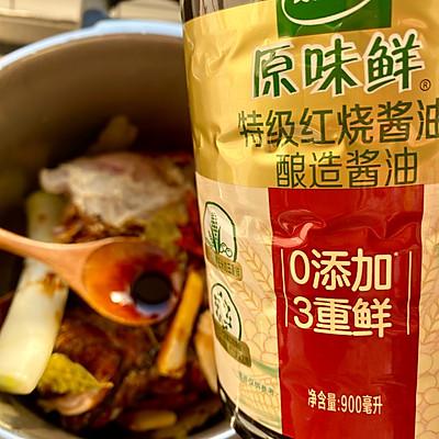5、加入夫人乐原味鲜特等红烧酱油调味