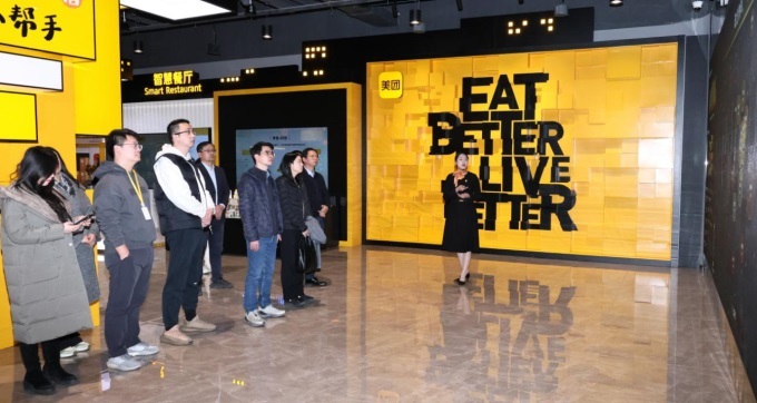 在签约仪式之前,罗兴邀请黄馨等人参观了美团指挥中心。在参观过程中,罗兴阐述了美团的发展历程、业务领域和科技创新。