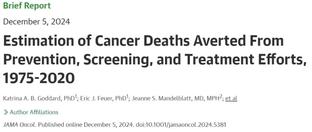 ①Estimation of Cancer Deaths Averted From Prevention, Screening, and Treatment Efforts, 1975-2020. doi:10.1001/jamaoncol.2024.5381