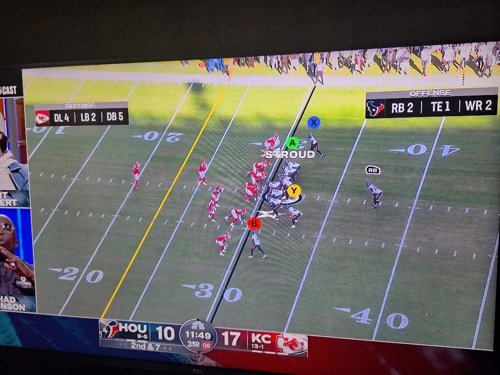 在这场比赛中,麦登足球的各种元素指数出现了,比赛中的游戏战略呈现、进攻球员的路线、球员下面的光标、明星的特殊技能等等。