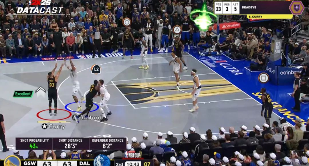 NBA2K游戏中的直播元素取代了日常直播,NBA2K完美地从玩家数据的展示形式、直播视角、画面表现等方面进行了复制。