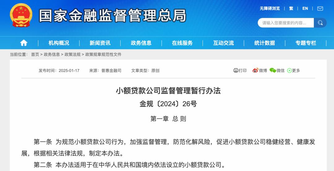日前,国家金融监督管理总局在广泛征求意见的基础上,发布了《小额贷款公司监督管理暂行办法》(以下简称《办法》)。《办法》共7章60条,对小额贷款公司的行业准入、融资方式、信息披露、技术标准、催收方式等做出了全面具体的要求。