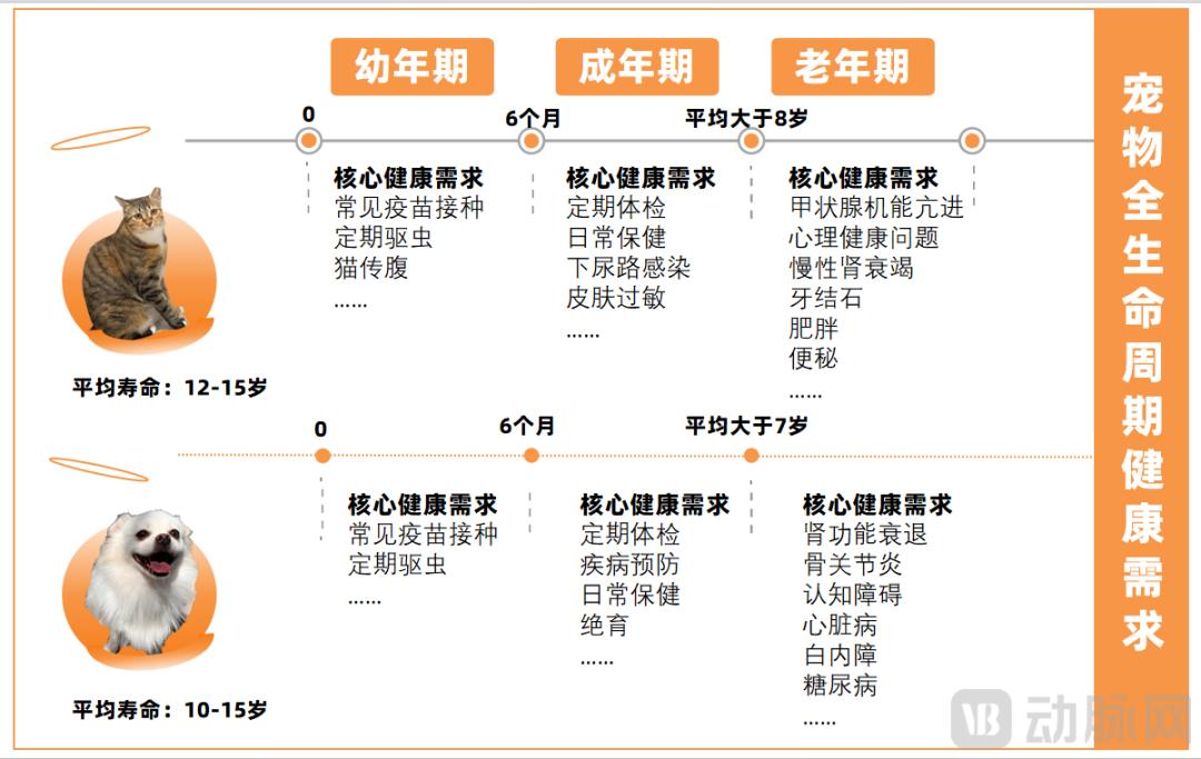 “幼年时期,宠物的核心健康需求是疫苗接种、驱虫等。;老年期主要是定期体检、疾病防治等。”勤智宠物基金合伙人史立明表示,“即将进入和进入老年期的宠物,其需求将转化为保健药品。同时,面对心血管疾病、肿瘤、白内障、关节炎、糖尿病、结石等日益突出的健康问题,医疗需求变得更加多样化和迫切。”