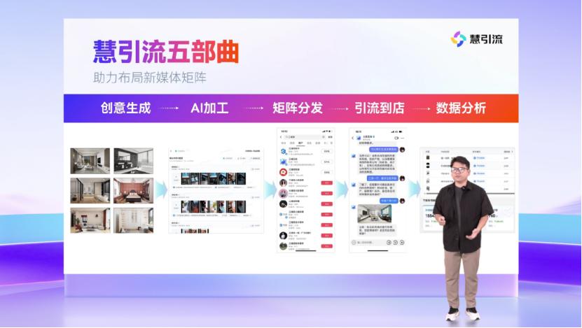 除生境技术外,其它科技企业也在积极进行技术创新。结合火山引擎底层技术,三维家居发布了AI全流程营销客户获取工具“智慧引流”,提供从短视频创意生成到分发、引流、客户获取、分析的AI一站式解决方案;