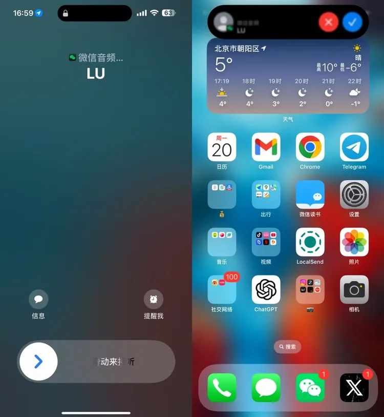 支持 CallKit 未来,当你的微信朋友给你打电话语音聊天/视频聊天时,你不需要解锁手机——打开微信——接听通话等一系列繁琐的步骤,而是像接听电话一样直接在任何界面接听。