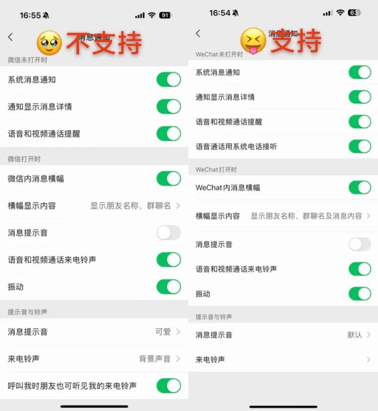 关闭大陆地区用户的微信 CallKit 以后在手机锁屏的情况下,收到微信语音消息时,只会提示一个横幅式的简单提示,“响”后铃声自动静音的概率很大,无疑给用户使用微信视频/语音带来了很大的不便。