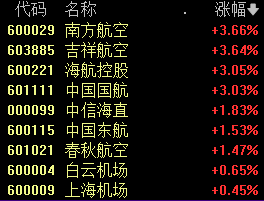 今日上午,机场航运板块上涨,吉祥航空、南航等个股涨幅居前。