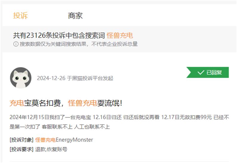 在黑猫投诉平台上,与怪物充电相关的投诉已经超过23000起,尤其是最近30天,新增投诉数量激增到298起,相当于平均每天增加近10起新增投诉。用户反馈的热点问题主要集中在退货后持续收费、价格过高、退货设备困难等方面。这些问题已经成为客户强烈不满的主要来源。
