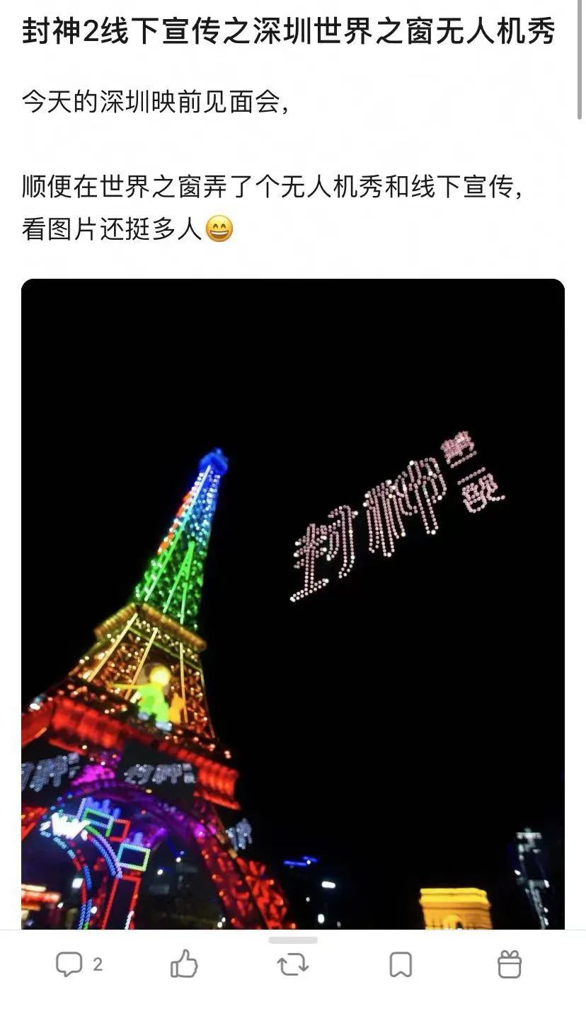 深圳世界之窗用无人机宣传《封神2》,很多游客停下来拍照。《射雕》的广告突然出现在上海地铁站和公交站。有网友说,他们孩子的幼儿园发了《熊出没》的涂色卡。今年的传播渗透可以说是无处不在。。
