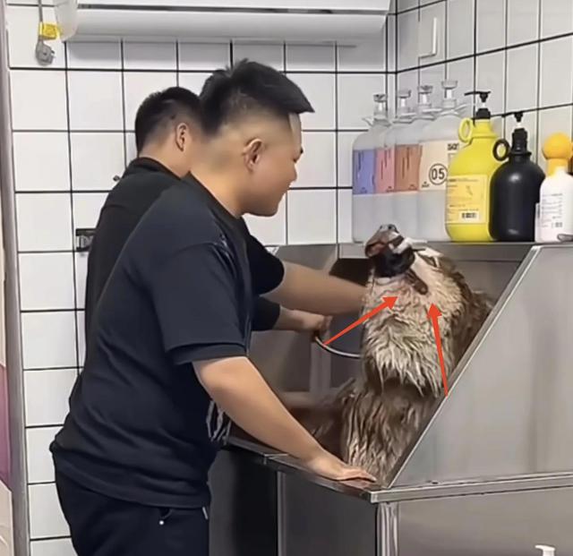 而且潘宏在给艾特洗澡的过程中,出于安全考虑,他们用几条扎带把艾特的嘴捆起来,水平很紧。