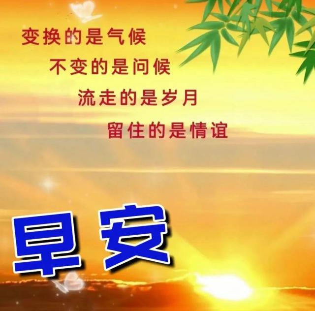 早上好,沉默的时候很凉爽,只依靠阳光。从现在开始,收拾好心情,生在阳光下,一个接一个地往前走;心中有温暖的阳光,不怕风霜。晨光照进心房,幸福开始荡漾,美好的一天再次出现。让好运陪伴你。何苦沧桑,唯愿平静,让美好的心情展翅飞翔。