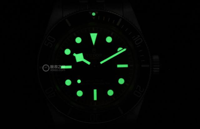 表镜也采用了复古表格中使用的泡沫表镜,底部是圆拱形的黑色表盘,极具帝舵碧湾色彩。这是帝舵第一次将黑色字圈与黑色表盘融为一体。虽然人们很容易想到劳力士的“黑水鬼”,但碧湾的“黑水鬼”在 3 一万多的定价已经很完美了。