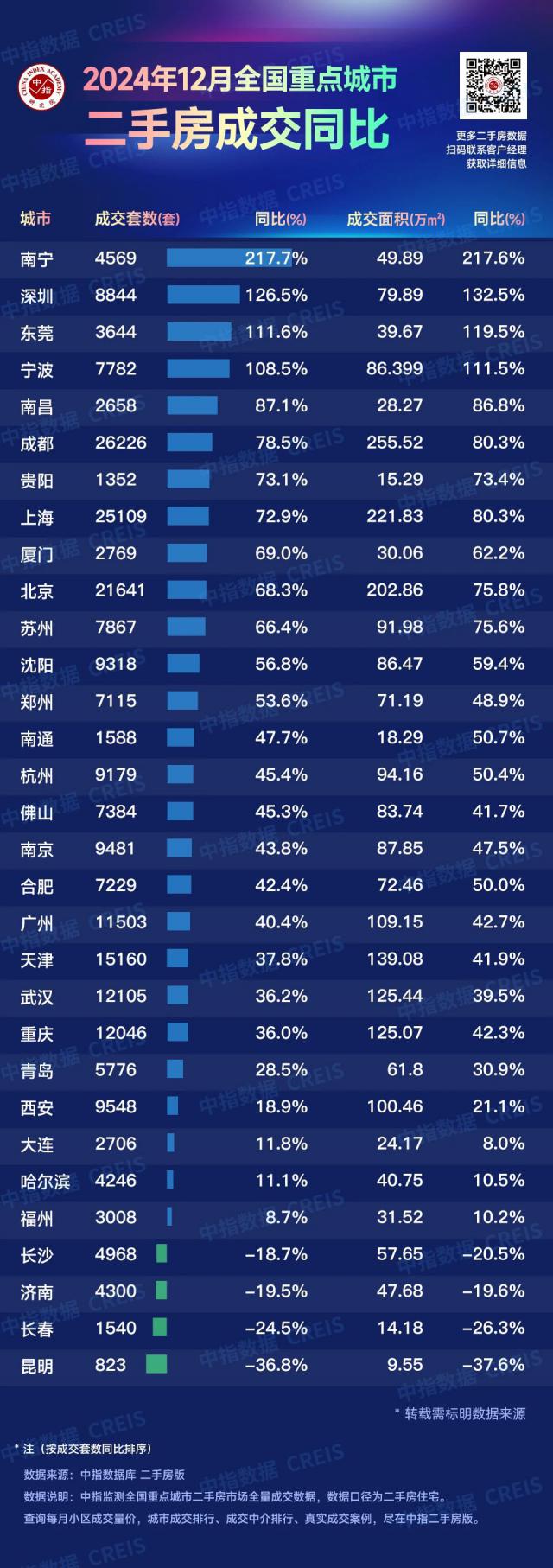 图:2024 年 12 月十大城市二手房挂牌均价及环比
