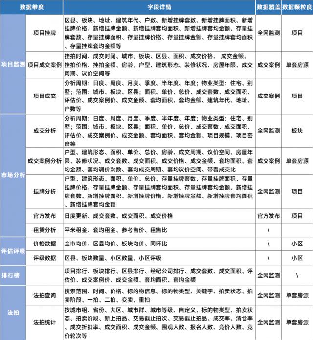 ● 2300 城市房地产数据,225 推出万宗土地交易信息,40 一万个住宅项目和 5 商业物业交易数据万栋;