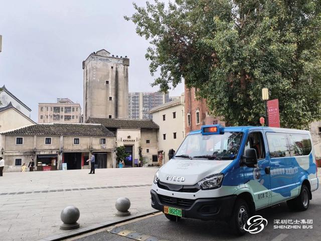 走在龙华观澜古墟上,不时有许多小小的蓝色巴士从街上驶来,像蓝海豚一样灵活地行走。
