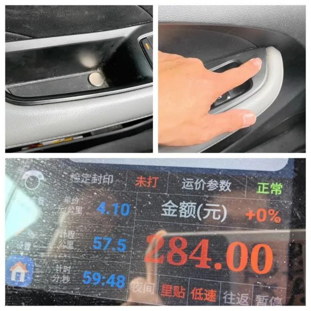 △程师傅的出租车,采用“强生技术”网联出租车计价器。
