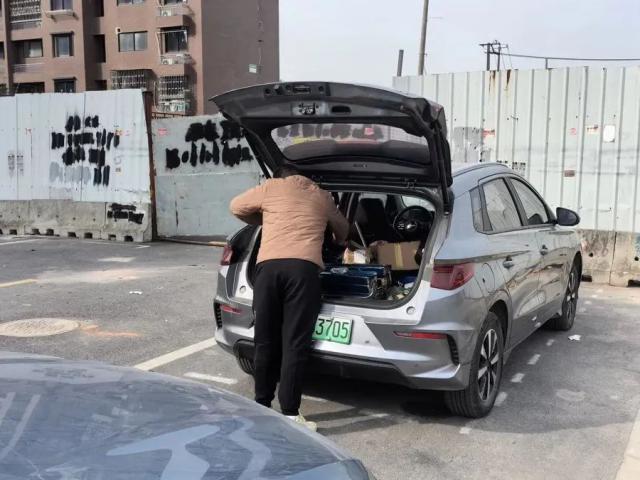 △小米正从装满各种线束的比亚迪后备箱中选择一套完整的配件。