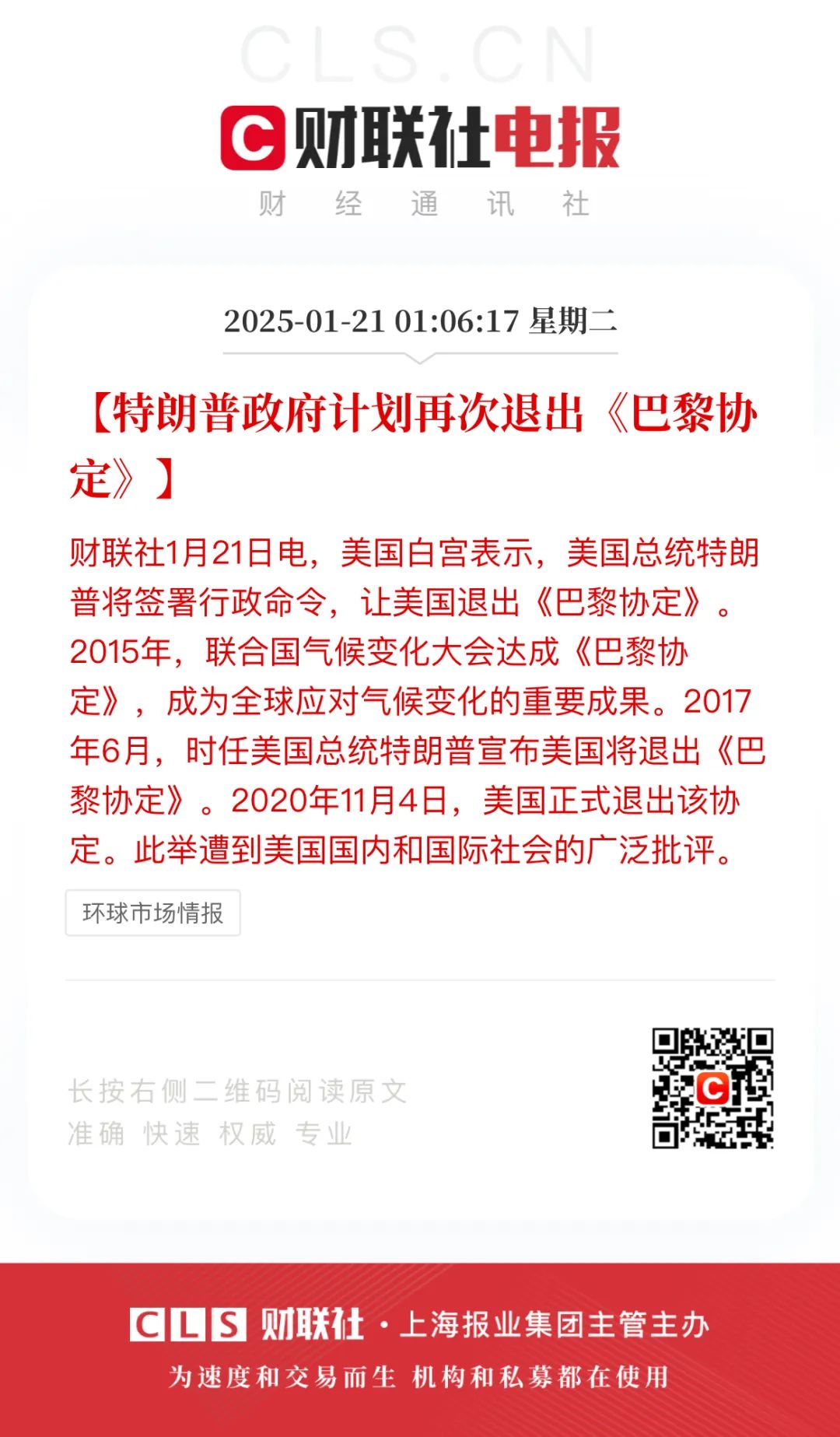 标题:《特朗普政府计划再次撤出巴黎协定》,联合国回应