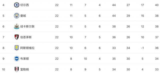 这场胜利是切尔西最近的胜利。 6 在英超联赛中取得第一场胜利。 3 分数之后,切尔西就在前面 22 轮的积分为 40 得分,成功超越曼城,升至联赛第一。 4 名字,而曼城则被挤进了第一名。 5 名字。利物浦暂时落后切尔西。 6 分。