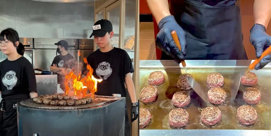 顾客可根据口味爱好,将汉堡肉继续煎至喜爱的熟度。