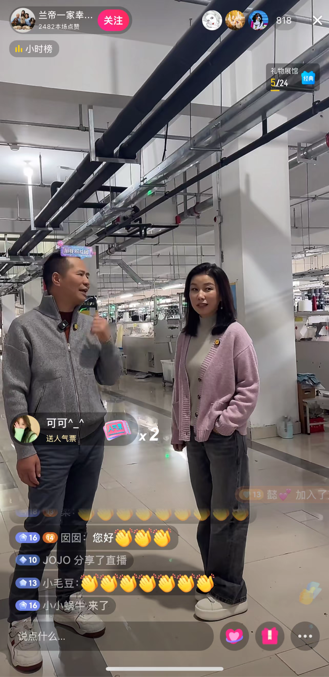 根据谢嘉宏的说法,这次直播从下午1点开始,因为直播间的人气一直很高,网友们也很活跃,直播持续到凌晨2点多。最后场均GMV达到了日常直播的数倍,@兰帝一家幸福的生活 多次登上男装和女装带货榜首位。基于这次合作的成功经验,LA BULL看到了追溯直播与根本工厂的高度匹配,并决定将追溯直播作为2025年的重要发展方向。